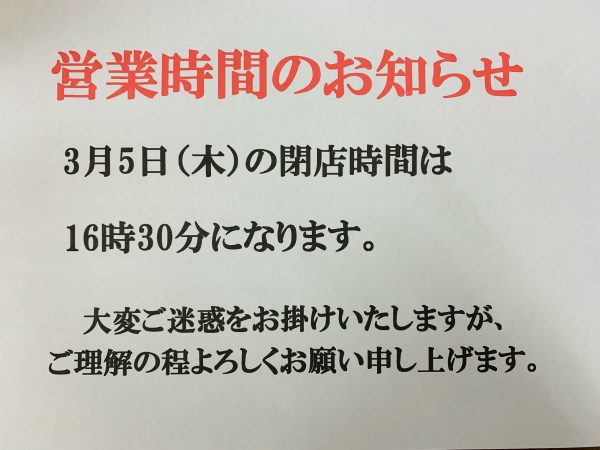 営業時間のお知らせ